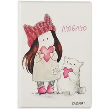 Обложка для паспорта Люблю тебя (девочка с котом) (ПВХ