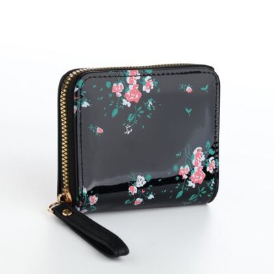 Кошелёк женский на молнии с ремешком, лакированный, цвет чёрный