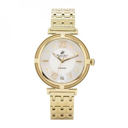 The BEVERLY HILLS POLO CLUB Women Gold Strap Analog Watch — BP3222X.120 is a luxurious and elegant timepiece that exudes sophistication. It features a round gold-tone dial with sparkling crystal hour markers, adding a touch of glamour to the overall design.The dial is made in such a way that you can always see the time on it, its shape is comfortable, elegant and pleasing to your eye. Not only does this watch look stylish, but it also offers reliable timekeeping with its precise movement. It also has a water resistance, making it suitable for everyday wear. The bracelet will sit nicely on your wrist and perfectly complement your watch, highlighting your sense of taste. The Watch is designed with both fashion and functionality in mind. They has a scratch-resistant mineral glass to protect the dial from any accidental damage. This watch is perfect for you who appreciate luxury and quality. It comes in a beautiful package, making it an ideal gift for yourself or a loved one. Elevate your style with this Watch.