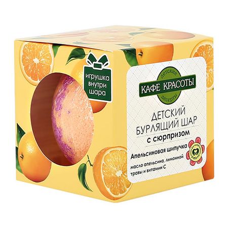 ДЕТСКИЕ ДЕСЕРТЫ серии КАФЕ КРАСОТЫ созданы специально для юных любителей поплескаться в ванной и насладиться водными процедурами играючи. В этом им помогут наши Десерты. Косметика не только абсолютно безопасна для детей, но и интересна своими нежными текстурами и вкусными ароматами. Мы приготовили настоящее лакомство — Апельсиновая шипучка. Натуральное масло апельсина, лимонной травы и витамин С нежно ухаживают за кожей. ДЕТСКИЕ ДЕСЕРТЫ для ванны — весело и полезно! ИГРУШКА ВНУТРИ ШАРА!