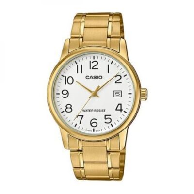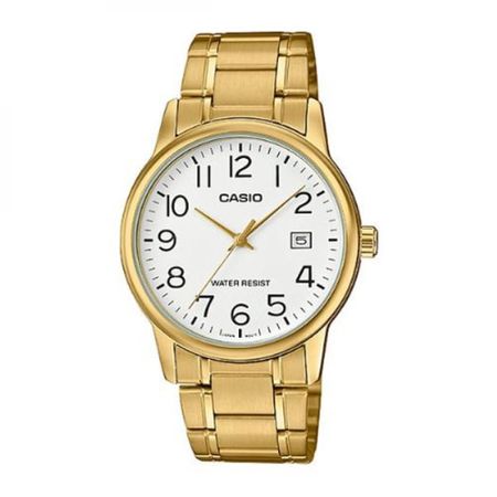 The CASIO Mens Stainless Steel Analog Watch MTP-V002G-7B2UDF is a sleek and stylish timepiece that exudes sophistication and class. The watch features a 37mm gold-toned stainless steel case with a clean and elegant design. The dial is made in such a way that you can always see the time on it, its shape is comfortable, elegant and pleasing to your eye. Not only does this watch look stylish, but it also offers reliable timekeeping with its precise movement. It also has a water resistance, making it suitable for everyday wear. The bracelet will sit nicely on your wrist and perfectly complement your watch, highlighting your sense of taste. The Watch is designed with both fashion and functionality in mind. They has a scratch-resistant mineral glass to protect the dial from any accidental damage. This watch is perfect for you who appreciate luxury and quality. It comes in a beautiful package, making it an ideal gift for yourself or a loved one. Elevate your style with this Watch.