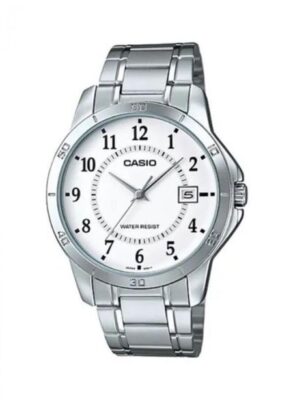 The CASIO Mens Water Resistant Analog Watch Mtp-V004D-7BUDF is a sleek and practical timepiece that combines classic design with modern functionality. The watch features a 40mm stainless steel case with a silver-tone finish, creating a sophisticated and timeless look. The dial is made in such a way that you can always see the time on it, its shape is comfortable, elegant and pleasing to your eye. Not only does this watch look stylish, but it also offers reliable timekeeping with its precise movement. It also has a water resistance, making it suitable for everyday wear. The bracelet will sit nicely on your wrist and perfectly complement your watch, highlighting your sense of taste. The Watch is designed with both fashion and functionality in mind. They has a scratch-resistant mineral glass to protect the dial from any accidental damage. This watch is perfect for you who appreciate luxury and quality. It comes in a beautiful package, making it an ideal gift for yourself or a loved one. Elevate your style with this Watch.