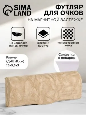 Футляр для очков на магните, длиной 16 см в бежевом исполнении. Лаконичный и стильный аксессуар для женщин, выполненный из искусственной кожи с жестким