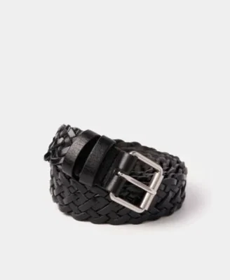 Мужской плетеный ремень выполнен из ременной толстой кожи с гладкой лицевой поверхностью и открытой бахтармой с оборотной стороны. Дополнен матовой никелевой