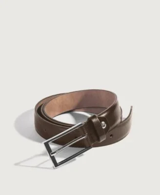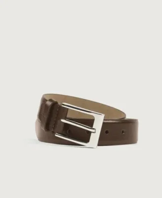 Мужской классический ремень выполнен из натуральной кожи с умеренным блеском. Традиции стиля выражены в строгом цвете и в лаконичной никелевой пряжке.