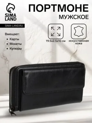 Портмоне мужское на молнии, отдел для карт, монет, цвет чёрный