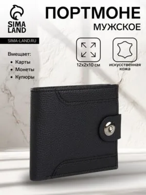 Портмоне мужское на магните, отдел для карт, монет, цвет чёрный