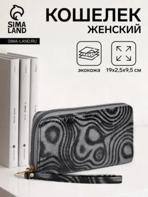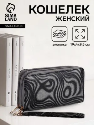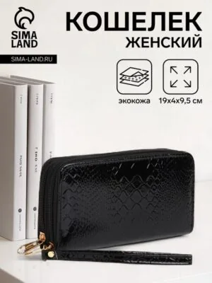 Кошелёк женский на молниях с ремешком, цвет чёрный