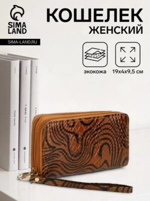 Кошелёк женский на молниях с ремешком, цвет коричневый