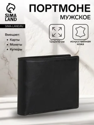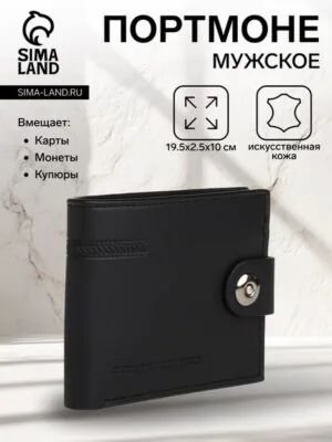 Портмоне мужское на магните, отдел для карт, монет, цвет чёрный