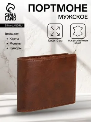 Портмоне мужское на магните, отдел для карт, монет, цвет коричневый