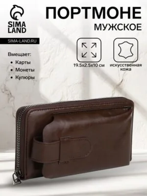 Портмоне мужское на молнии, отдел для телефона, карт, монет, цвет коричневый