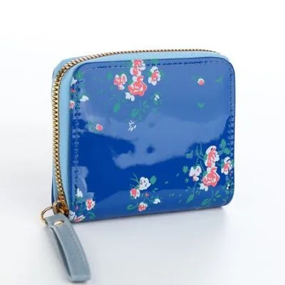 Кошелёк женский на молнии с ремешком, лакированный, цвет синий