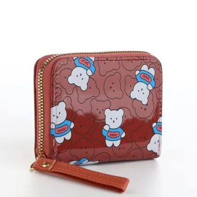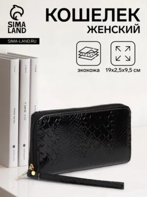 Кошелёк женский на молнии с ремешком, лакированный, цвет коричневый