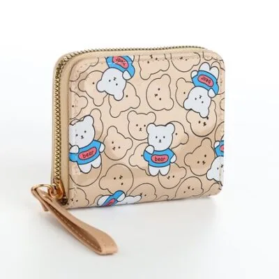 Кошелёк женский на молнии с ремешком, лакированный, цвет бежевый