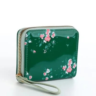 Кошелёк женский на молнии с ремешком, лакированный, цвет зелёный