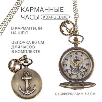 Часы карманные «Якорь», кварцевые, циферблата d=4.5 см, цепочка 80 см