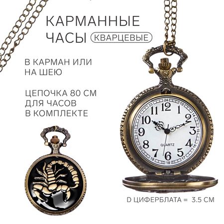 Часы карманные «Скорпион», кварцевые, циферблата d=3.5 см, цепочка 80 см