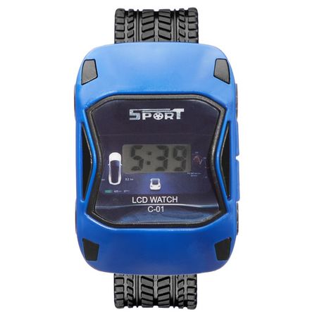 Часы наручные детские электронные, «Гоночная машинка», ремешок силикон, 22 см, синие