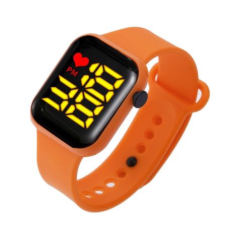 Часы наручные электронные, 3.7 х 3.7 см, календарь, ремешок силикон, оранжевые