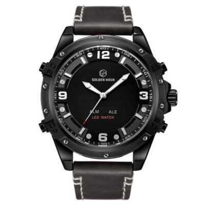 Черные наручные электронные часы: стиль, функциональность и защита от водыСтильные и многофункциональные наручные часы станут отличным выбором для любителей активного образа жизни. Диаметр циферблата 5 см обеспечивает отличную видимость времени, а встроенные функции будильника, календаря и подсветки делают использование часов максимально удобным.Особенности:Яркая подсветка: Позволяет видеть показания даже в темноте.Защита от влаги: Водонепроницаемы на глубине до 10 метров, что обеспечивает безопасность при случайном попадании воды.Современный дизайн, который подойдет к любому образу.