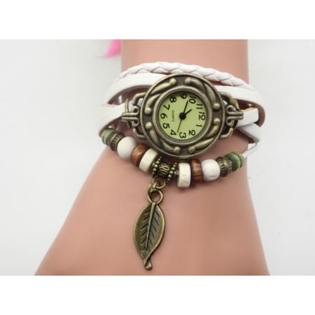Утонченный и изящный дизайн наручных часов подчеркнет ваш безукоризненный вкус в любой ситуации и дополнит образ. Красивые винтажные часы с подвеской на кожаном плетёном ремешке для прекрасных дам любого возраста. Работают от батарейки типа «таблетка», которой хватает на долгое время. Ремешок украшен деревянными бусами и акрилом.