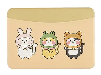 Картхолдер понравится тем, кто любит вещи с милым дизайном. Материал аксессуара — прочный ПВХ, на нем изображены три зверька в милых шапочках. Аксессуар хорошо подойдет для банковских и социальных карт, проездных и пропусков.
