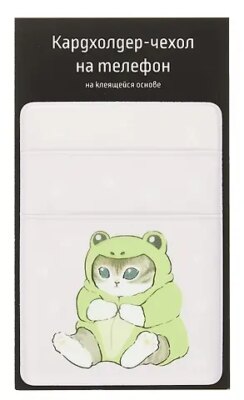 Аксессуар изготовлен из прочного ПВХ. Картхолдер светло-бежевого цвета с двумя отделениями. На него также нанесён принт котика, а ещё отпечатков его лапок. На задней стороне есть клеевая основа, чтобы прикрепить аксессуар к смартфону или чехлу. Носите в картхолдере банковские и социальные карты, проездной и пропуск — пусть всё будет под рукой.