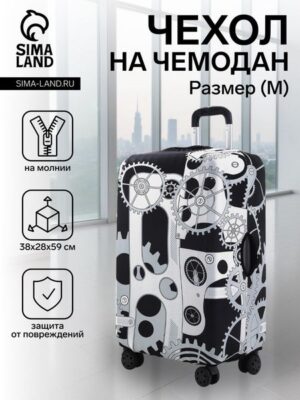 Главная » Аксессуары Чехол на чемодан на колёсах, 24″ (M), с принтом «Шестерёнки», чёрный/серый Просмотров 5 Чехол на чемодан на колёсах, 24″ (M), с принтом «Шестерёнки», чёрный/серый
