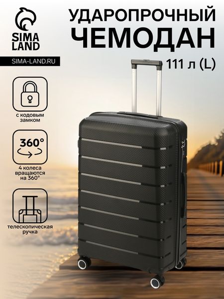 Чемодан на колёсах большой 111 л (L), на молнии, кодовый замок, 4 колеса, чёрный