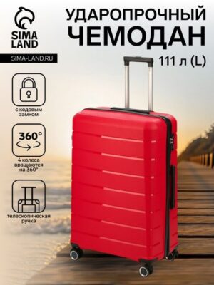 Чемодан на колёсах большой 111 л (L), на молнии, кодовый замок, 4 колеса, красный