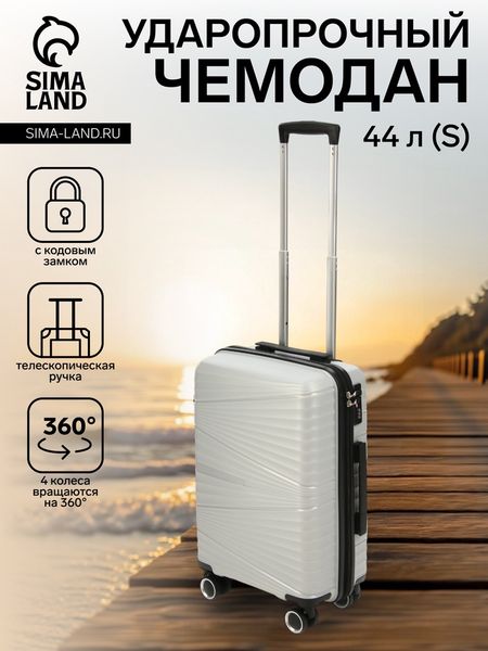 Чемодан на колёсах маленький 44 л (S), на молнии, кодовый замок, 4 колеса, светло-серый