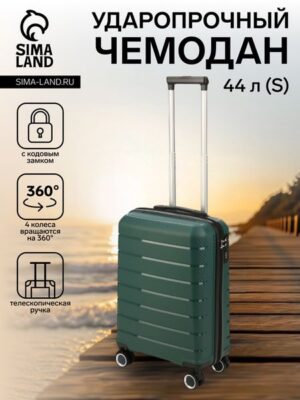 Чемодан на колёсах маленький 44 л (S), на молнии, кодовый замок, 4 колеса, тёмно-зелёный
