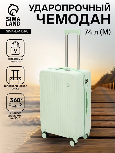 Чемодан на колёсах средний 72 л (М), на молнии, кодовый замок, 4 колеса, светло-зелёный