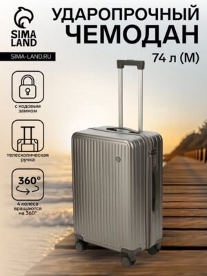 Чемодан на колёсах средний 72 л (М), на молнии, кодовый замок, 4 колеса, тёмно-серый