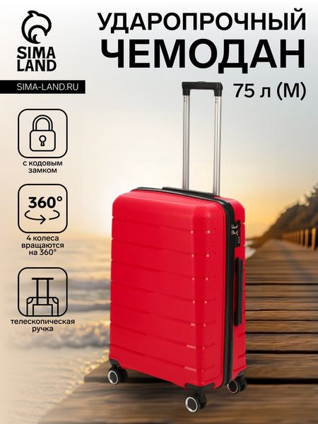 Чемодан на колёсах средний 75 л (М), на молнии, кодовый замок, 4 колеса, красный