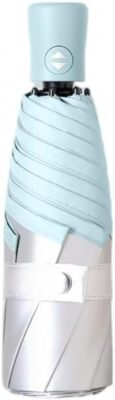 99.9 % UV protectionSilver coating layer fabric reflects heat to cool you down; UPF 50+ high UV rated blocking 99.9% of the suns harmful UVA and UVB solar rays, protects your skin from damage caused by sunlight.Mini Travel Size Measuring just 8.5″ long and weighing less than 0.82lb the folding handheld umbrella is extremely packable in purses, briefcases, backpacks, luggage,car and more.It provides great convenience for outdoor hiking, camping, walking, fishing and other activities.Waterproof And DurableWe use the latest technology resin-reinforced fiberglass, has aerospace -grade aluminum alloy umbrella bone,which is super flexible, durable, wind-resistant, rust-resistant, and lightweight. It is an umbrella that can resist rain, and the sun at the same time. A daily necessity for all seasons!