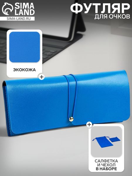 Футляр для очков, чехол, салфетка, синий. Набор для очков: футляр, чехол, салфетка — это все, что нужно для надежной защиты и ухода за вашими очками. В комплект входят удобный футляр для безопасного хранения, мягкий чехол для предотвращения царапин и салфетка для тщательной очистки линз от пыли и загрязнений. Этот набор идеально подходит для повседневного использования, обеспечивая долгосрочную сохранность ваших очков. Футляр надежно защищает от механических повреждений, чехол помогает избежать загрязнений, а салфетка обеспечивает легкую и эффективную очистку без риска повреждения линз. Набор для очков — это практичное и стильное решение для заботы о вашем аксессуаре, обеспечивающее удобство и долговечность в использовании.