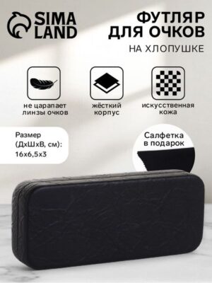 Футляр для очков — это идеальное сочетание элегантности и практичности. Изготовленный из искусственной кожи и оснащённый надёжной застёжкой «хлопушка», этот аксессуар станет незаменимым помощником для женщин, ценящих стиль и комфорт. Чёрная поверхность футляра и его оптимальная длина в 15 см делают его универсальным компаньоном для любых очков.Преимущества Эргономичный дизайн, который удобно лежит в руке и легко умещается в сумке. Жёсткий корпус обеспечивает защиту очков от повреждений и царапин. Долговечный материал, сохраняющий первозданный вид на долгие годы. Продуманная застёжка «хлопушка» обеспечивает быстрый доступ к очкам. Универсальность использования для разных типов очков. Лёгкость в уходе и чистке. Компактный размер обеспечивает удобство хранения. Элегантный чёрный цвет подойдёт к любому стилю одежды. Вы получите не только изящный аксессуар, но и уверенность в сохранности ваших очков. Покупая футляр вы выбираете качественное и доступное решение, которое всегда будет рядом. Сделайте выбор в пользу удобства и надёжности.