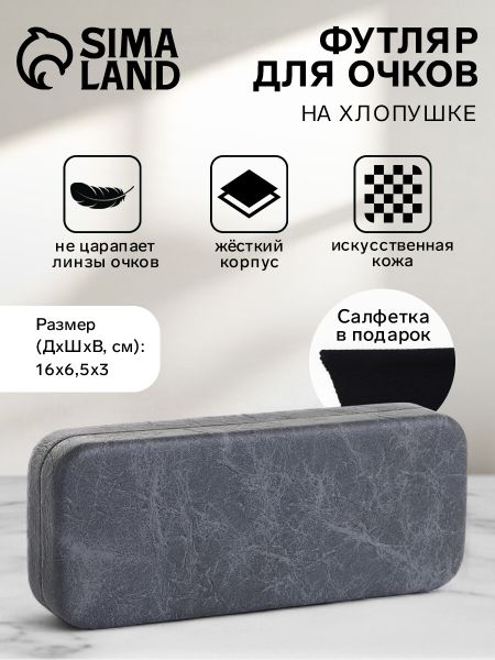 Футляр для очков на хлопушке, длина 15 см, серый. Изысканный футляр для очков — это сочетание стиля и практичности. Его лаконичный серый цвет подчеркнет ваш утонченный вкус, а современный дизайн обеспечит надежную защиту для ваших очков. Изготовленный из искусственной кожи с жестким корпусом, этот аксессуар идеально подходит для женщин, ценящих комфорт и долговечность. Надежная застежка-на хлопушке позволит легко использовать футляр в любых ситуациях. <b> Преимущества</b> <ul> <li> Универсальный размер: подходит для большинства очков, защищает оптику от повреждений. </li> <li> Эргономичный дизайн: легко помещается в сумку или карман благодаря компактным габаритам. </li> <li> Износостойкость: качественные материалы и прочный корпус гарантируют долговечность использования. </li> <li> Легкость в уходе: искусственная кожа проста в чистке, что облегчает поддержание аккуратного вида. </li> <li> Элегантность: дизайн и цвет подойдут к любой одежде, акцентируя ваш стиль. </li> <li> Безопасность: надежная застежка сохраняет ваши очки в сохранности. </li> <li> Экономичное решение: доступная цена и высокая функциональность сочетаются для вашего удобства. </li> </ul> Подарите ощущение уверенности и комфорта вашим очкам с футляром «Пьемонт». Практичное и бюджетное решение для хранения и защиты ваших оптических аксессуаров. Не упустите шанс сделать правильный выбор — добавьте его в корзину уже сейчас!