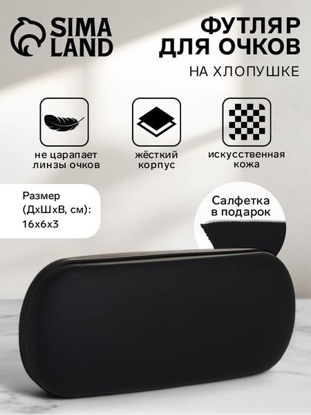 Чёрный футляр для очков. Идеальное сочетание стиля и защиты для ваших очков. Жёсткий корпус, обеспечивающий надёжную защиту, с удобной застёжкой-хлопушкой. Универсальное решение для мужчин и женщин, которые ценят надёжность и функциональность. Изготовлен из искусственной кожи, длина — 16 см. Преимущества Эргономично ложится в руку и легко помещается в сумку; Прочный материал продлит срок службы футляра; Удобный механизм застёжки для быстрого доступа к вашим очкам; Сфера применения: подходит для всех типов очков, включая солнцезащитные и коррекционные; Размеры футляра идеально подходят для большинства стандартных очков; Элегантный внешний вид, подходящий для деловых встреч и повседневного использования; Универсальность: одинаково применим для мужчин и женщин; Защитное покрытие, предотвращающее царапины и повреждения. Выберите надёжность и стиль, не жертвуя удобством. Футляр для очков станет вашим верным спутником, обеспечивая защиту и долгий срок службы ваших очков. Оцените экономичное и практичное решение на каждый день.