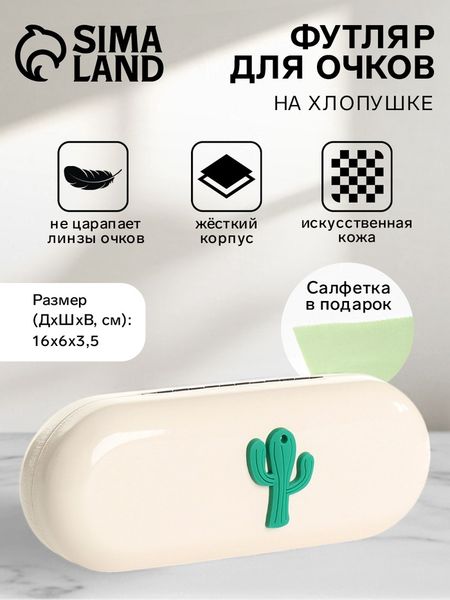 Футляр для очков на хлопушке, длина 16 см, цвет молочный. Прекрасное решение для тех, кто ценит стиль и практичность. Молочный оттенок и застёжка-хлопушка делают футляр идеальным как для девочек, так и для мальчиков. Изготовлен из искусственной кожи с жёстким корпусом, обеспечивая надёжную защиту очков от повреждений.Преимущества Универсальность: подходит как для повседневного использования, так и для путешествий; Эргономика: лёгкий и компактный, легко поместится в сумку или рюкзак; Долговечность: искусственная кожа устойчива к износу и не теряет внешний вид; Удобство использования: застёжка-хлопушка позволяет быстро и легко открывать и закрывать футляр; Надёжная защита: жёсткий корпус оберегает очки от ударов и случайных повреждений; Стильный дизайн: молочный цвет добавляет футляру элегантный и современный вид; Экономичность: продукт доступен по цене и не требует дополнительных затрат на уход.Выбирайте надёжный и удобный футляр для ваших очков. Лёгкий, компактный и доступный – это выгодное решение для тех, кто ценит качество и стиль. Убедитесь в этом сами и позаботьтесь о своих очках прямо сейчас.