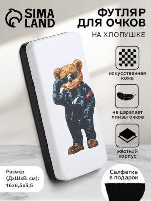 Футляр для очков на хлопушке «Мишка в чёрном», длина 16 см, белый