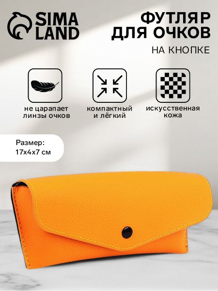 Футляр для очков на кнопке, длина 17 см, оранжевый. Элегантный футляр для очков длиной 17 см – это стильное и практичное решение для женщин, стремящихся к комфорту и эстетике. Оранжевый цвет не только привлекает внимание, но и добавляет яркости вашему повседневному образу. Футляр оснащен удобной кнопочной застежкой, что гарантирует легкость в открытии и надежность при хранении вашего аксессуара. <b> Преимущества</b> <ul> <li> Компактность: эргономичный дизайн легко помещается в сумочку любого размера;</li> <li> Долговечность: качественные материалы обеспечивают длительное использование без потери внешнего вида;</li> <li> Удобство использования: простая кнопочная застежка делает эксплуатацию футляра быстрой и легкой;</li> <li> Легкость: несмотря на гибкость, футляр не перегружает сумку лишним весом;</li> <li> Безопасность: внутреннее покрытие защищает очки от царапин и пыли;</li> <li> Современный дизайн: стильный оранжевый цвет придает модный акцент вашему образу, подчеркивая индивидуальность;</li> <li> Гибкость использования: подходит как для солнцезащитных, так и для корректирующих очков.</li> </ul> Выбирая данный футляр, вы получаете выгодное сочетание цены, стиля и качества. Этот аксессуар станет надежным спутником ваших очков и подчеркнет индивидуальность. Сделайте выбор в пользу комфорта и уверенности, идите в ногу с трендами!
