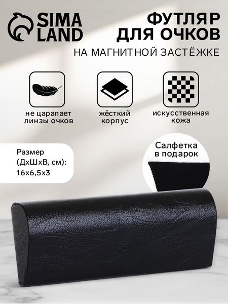 Футляр для очков на магните, длина 16 см, чёрный