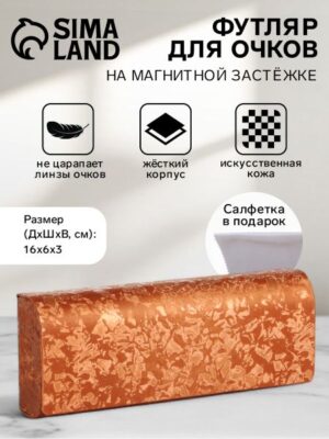 Футляр для очков на магните, длина 16 см, с рисунком «Морозный узор», коричневый. Элегантный футляр для очков с изысканным рисунком «Морозный узор» из искусственной кожи коричневого цвета. Его длина в 16 см идеально подходит для большинства женских очков. Футляр оснащен магнитной застежкой для легкого и надежного использования. Жесткий корпус обеспечивает максимальную защиту вашего аксессуара, делая его оптимальным выбором для дам, ценящих стиль и функциональность. Подходящий подарок на 8 марта для ваших любимых. <b> Преимущества</b> <ul> <li> Эргономичная форма: удобно ложится в руку и легко помещается в сумку.</li> <li> Долговечность: прочные материалы сохраняют качество надолго.</li> <li> Удобство использования: легкая магнитная застежка для быстрого доступа к очкам.</li> <li> Сфера применения: идеален для использования в офисе, в путешествиях и на отдыхе.</li> <li> Защита от царапин: мягкая внутренняя подкладка защищает от повреждений.</li> <li> Элегантный дизайн: стильный узор дополнит любой образ.</li> <li> Пылеустойчивость: закрытая конструкция предохраняет от загрязнений.</li> </ul>