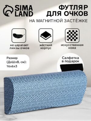 Футляр для очков на магните, длина 16 см, синий. Футляр для очков длиной 16 см в элегантном синем цвете — идеальное сочетание стиля и практичности. Изготовлен из прочной искусственной кожи, с надежной магнитной застежкой для удобного использования. Жесткий корпус защитит ваши очки в любых условиях. Незаменим в повседневной жизни женщин, которые ценят каждую деталь. <b> Преимущества</b> <ul> <li> Широкая сфера применения: подходит для солнечных и оптических очков.</li> <li> Эргономичный дизайн: легкость в ношении и транспортировке.</li> <li> Долговечность: искусственная кожа устойчива к потертостям и воздействию.</li> <li> Дополнительная функция: магнитная застежка плотно фиксирует очки.</li> <li> Удобство использования: легко открывается и закрывается одной рукой.</li> <li> Эстетичный вид: стильный синий цвет подчеркивает вашу индивидуальность.</li> <li> Жесткий корпус: защита от механических повреждений и загрязнений.</li> <li> Компактность: занимает минимум места в сумке.</li> </ul>