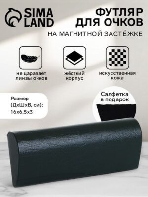 Футляр для очков станет незаменимым аксессуаром для любой женщины, ценящей стиль и качество. Выполненный из искусственной кожи, он обладает жёстким корпусом, что гарантирует надежную защиту ваших очков. Практичная длина 16 см и ширина 6.5 см обеспечивают универсальность, а тёмно-зелёный цвет придает ему элегантность. Удобная магнитная застёжка делает открытие и закрытие футляра быстрым и простым.ПреимуществаИдеально подходит для ежедневного использования благодаря эргономичному дизайну.Высокая долговечность материалов позволяет использовать футляр долгое время без потери внешнего вида.Магнитная застёжка обеспечивает максимальную безопасность и легкость использования.Стильный однотонный дизайн подходит под любой наряд и аксессуары.Компактный размер позволяет легко носить футляр в сумке или рюкзаке.Жёсткий корпус защищает очки от механических повреждений и царапин.Удобство в использовании благодаря простой и интуитивно понятной конструкции.Универсальность – подходит для большинства форм очков.Стильный и надежный аксессуар для ваших очков, который станет частью вашего образа и подчеркнет внимание к деталям. Наслаждайтесь выгодным решением, которое не требует компромиссов между удобством и ценой.