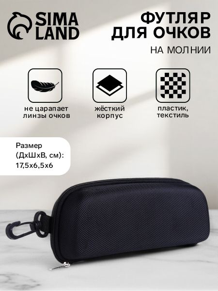 Футляр для очков на молнии, длина 17 см, с карабином, черный. Футляр для очков — стильное и надежное решение для защиты ваших очков от повреждений. Черный цвет подчеркивает универсальность аксессуара, а длина 17,5 см позволяет удобно размещать многочисленные модели очков. Этот футляр подходит как для мужчин, так и для женщин, обеспечивая надежность благодаря жесткому корпусу из текстиля и застежке на молнии. Карабин упрощает транспортировку, позволяя легко прикрепить его к сумке или рюкзаку. <b> Преимущества</b> <ul> <li> Подходит для повседневного использования и путешествий;</li> <li> Эргономичный дизайн экономит место в сумке;</li> <li> Долговечный текстиль, устойчивый к износу;</li> <li> Удобная застежка на молнии быстро открывается и закрывается;</li> <li> Жесткий корпус сохраняет форму футляра и защиту очков; /li</li> <li> Легкий вес минимизирует нагрузку при переноске;</li> <li> Черный цвет, который подходит к любому стилю одежды;</li> <li> Карабин увеличивает удобство крепления и транспортировки.</li> </ul> Сделайте правильный выбор для надежной защиты ваших очков. Этот футляр сочетает в себе доступность и удобство, добавляя уверенности в надежности. Ваши очки всегда защищены, а вы спокойны.