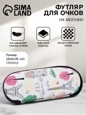 Футляр для очков на молнии «Весенний Париж», длина 17 см, белый